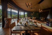 Ultra luxury lodge situated in the heart of Zululand, unfenced, catering from sustainable, local organic ingredients, gym with panoramic views, library, infinity pool with breathtaking views, luxury wine cellar. It comprises 12 luxury tents with unique, award-winning design, air-conditioned, with private heated pool and convenient iPad ordering of food and drinks, 2 x family tents (bookable on request) include 2 interconnecting luxury tents with a communal area accessed via a walkway, 1 x romantic luxury tent, secluded, total privacy with private outdoor shower and bath.